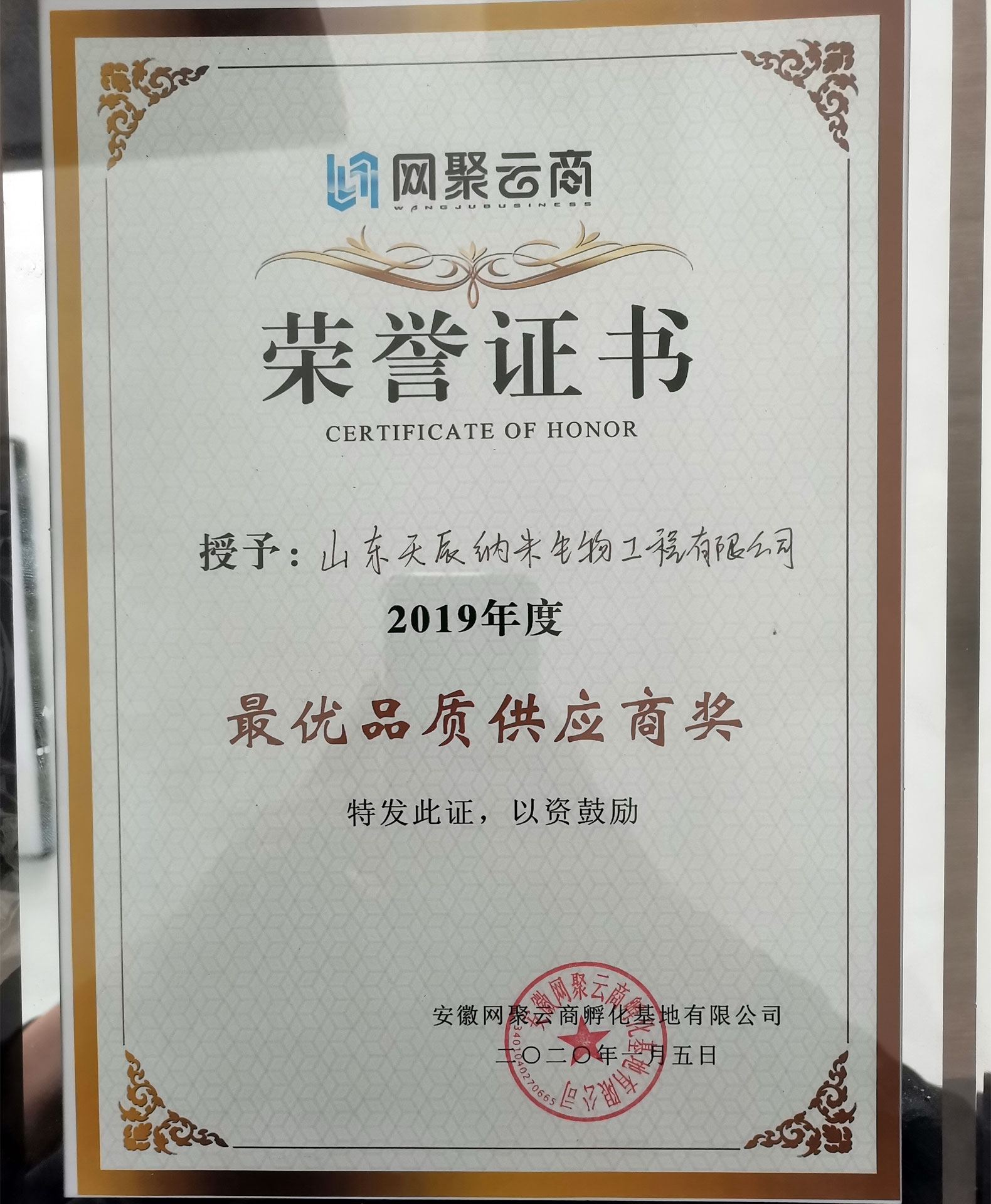 網(wǎng)聚云商2019年度最優(yōu)品質(zhì)供應(yīng)商獎(jiǎng)