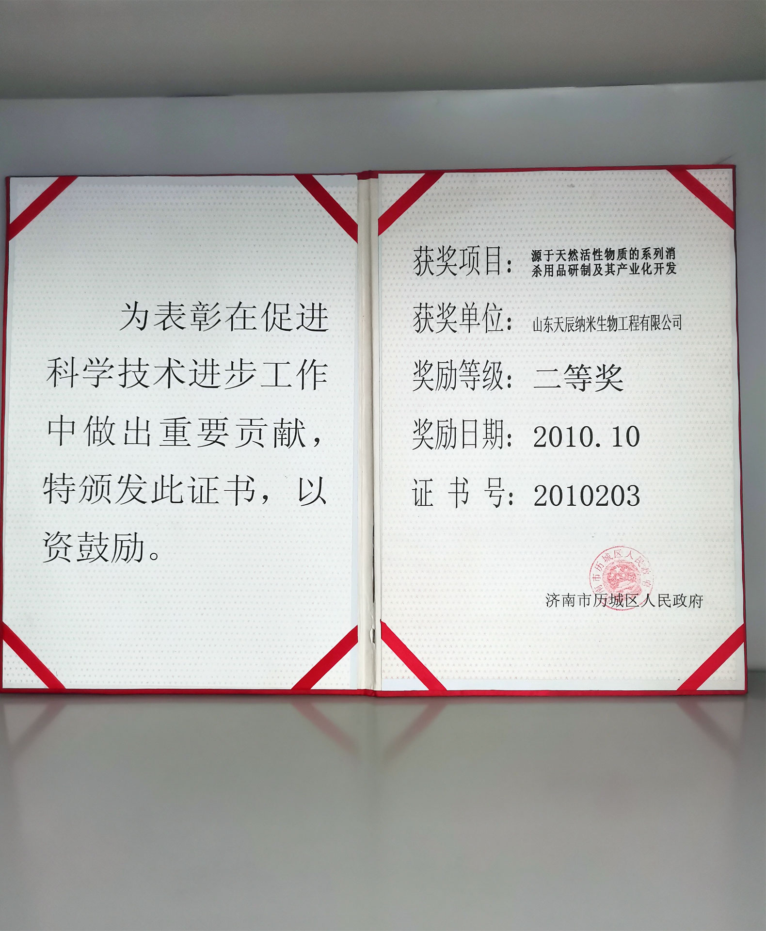 濟(jì)南市歷城區(qū)科學(xué)技術(shù)進(jìn)步獎(jiǎng)